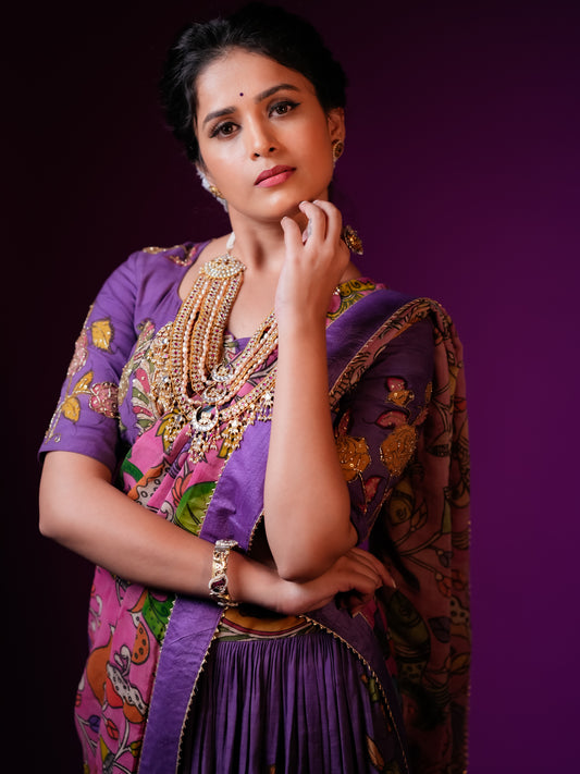 Purple Kalamkari Half Saree